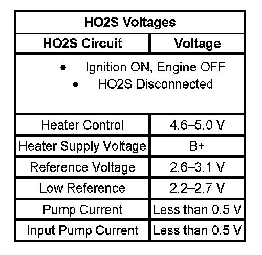 - The table illustrates the typical voltages for the HO2S circuits.