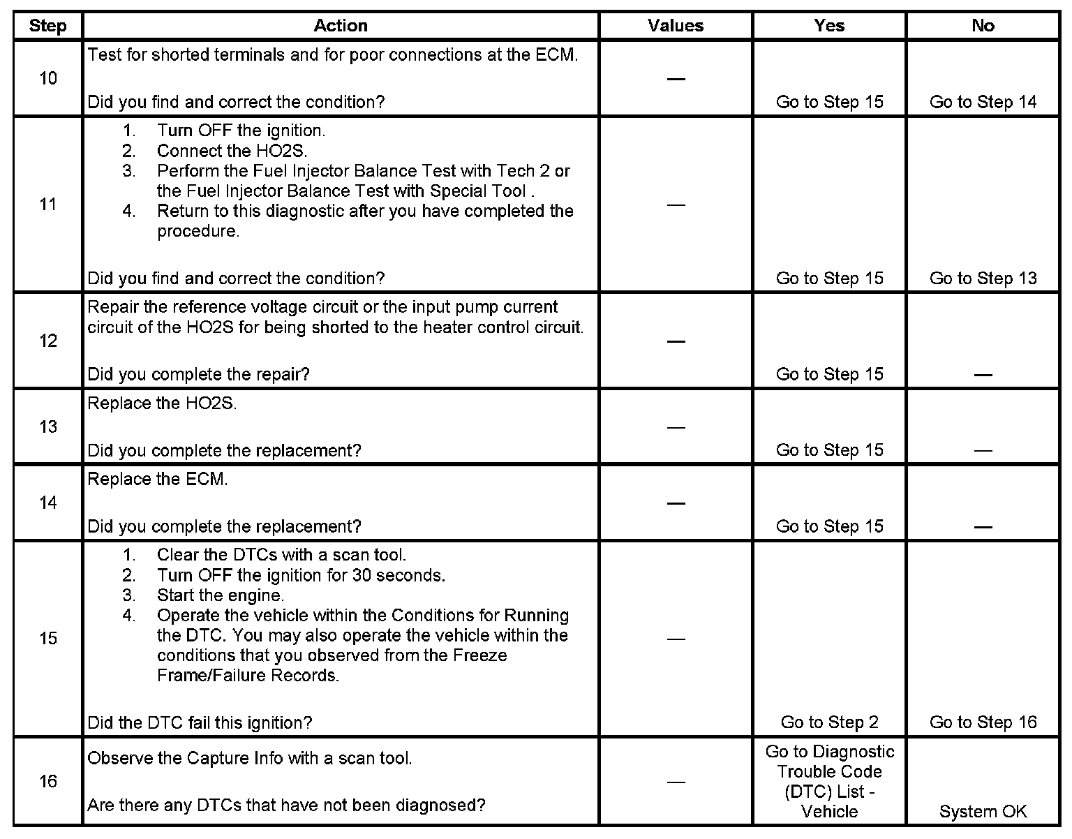 2. This step determines if the condition exists. If there is a condition with the HO2S circuits, the ECM commands open loop for the applicable sensor.