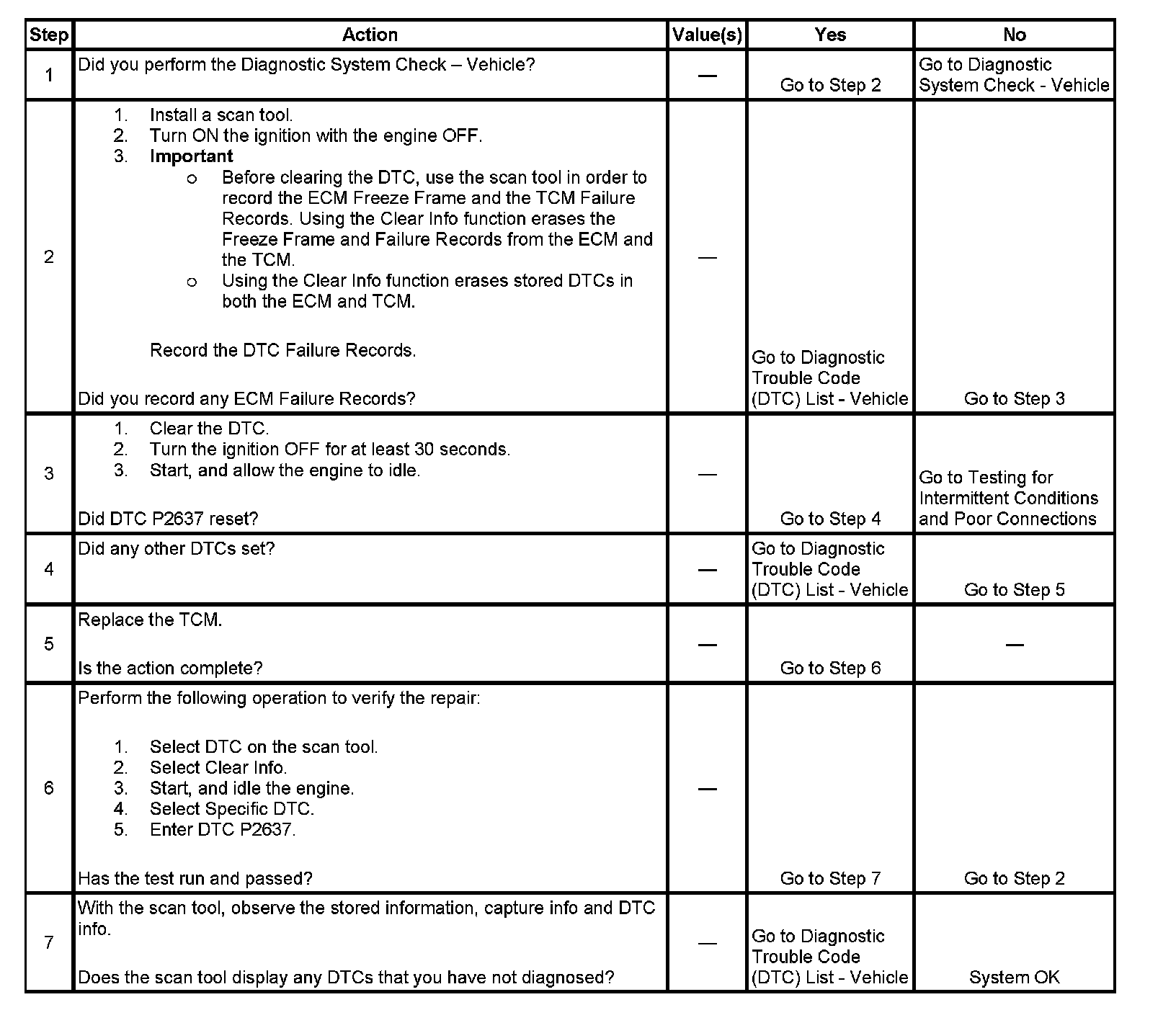 ^ The TCM stores DTC P2637 in TCM history.