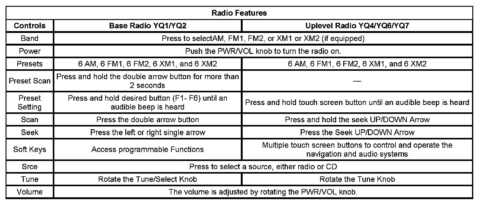 - Base radio (YQ2)-AM/FM, CDX, ETR, RDS, XM and Bose Amplifier
