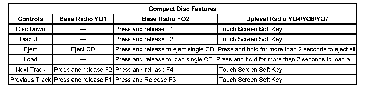 - Base radio (YQ1)-AM/FM, CD, ETR, and Bose amplifier