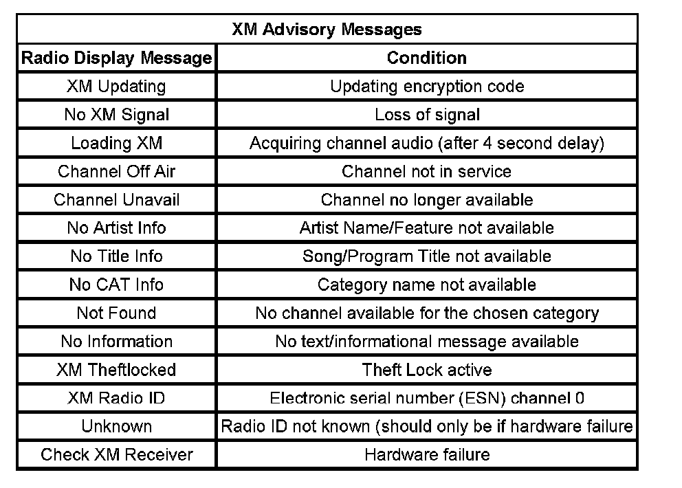 XM is a national satellite radio service that offers up to 100 coast to coast channels including music, news, sports, talk and children's programming. XM provides digital quality audio and text information, including song title and artist name. A service fee is required in order to receive the XM service. For more information, contact XM at www.xmradio.com or call 1-800-852-9696.