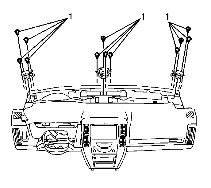 2. Remove the screws (1) securing the speaker to the I/P.