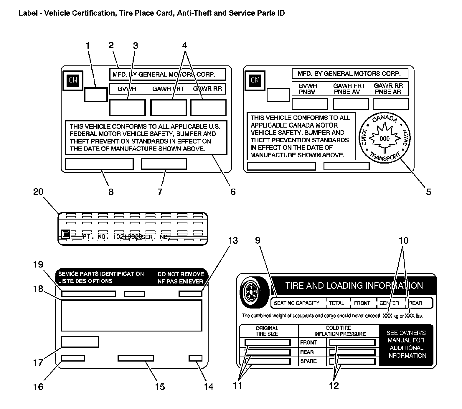 Label - Vehicle Certification, Tire Place Card, Anti-Theft And Service Parts ID: