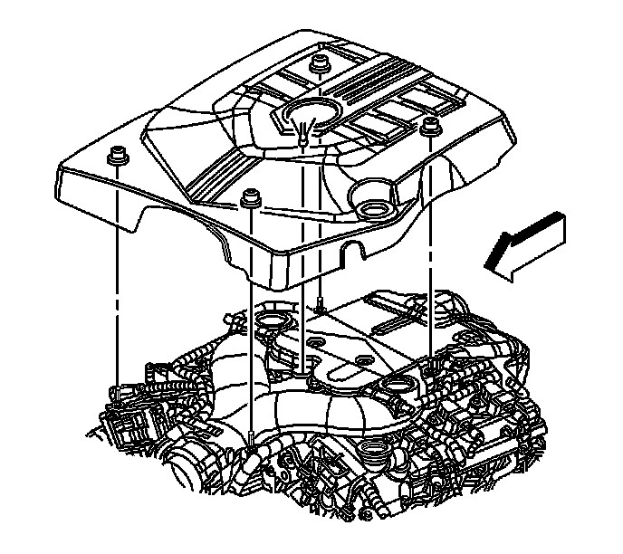 2. Position the engine cover/sight shield over the intake manifold so the grommets are aligned with the ball studs.
