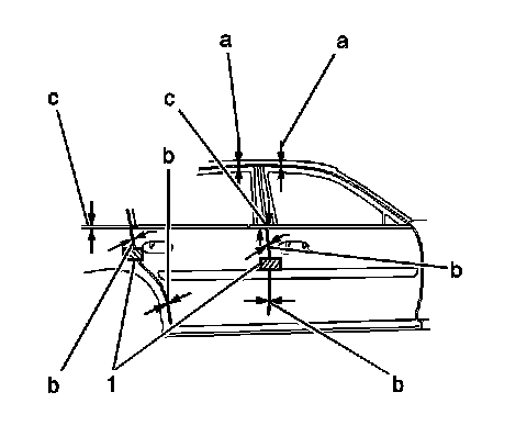 14. Verify door header to door header at the center pillar is flush to within 1 mm (0.04 in). Adjust the door headers if necessary.