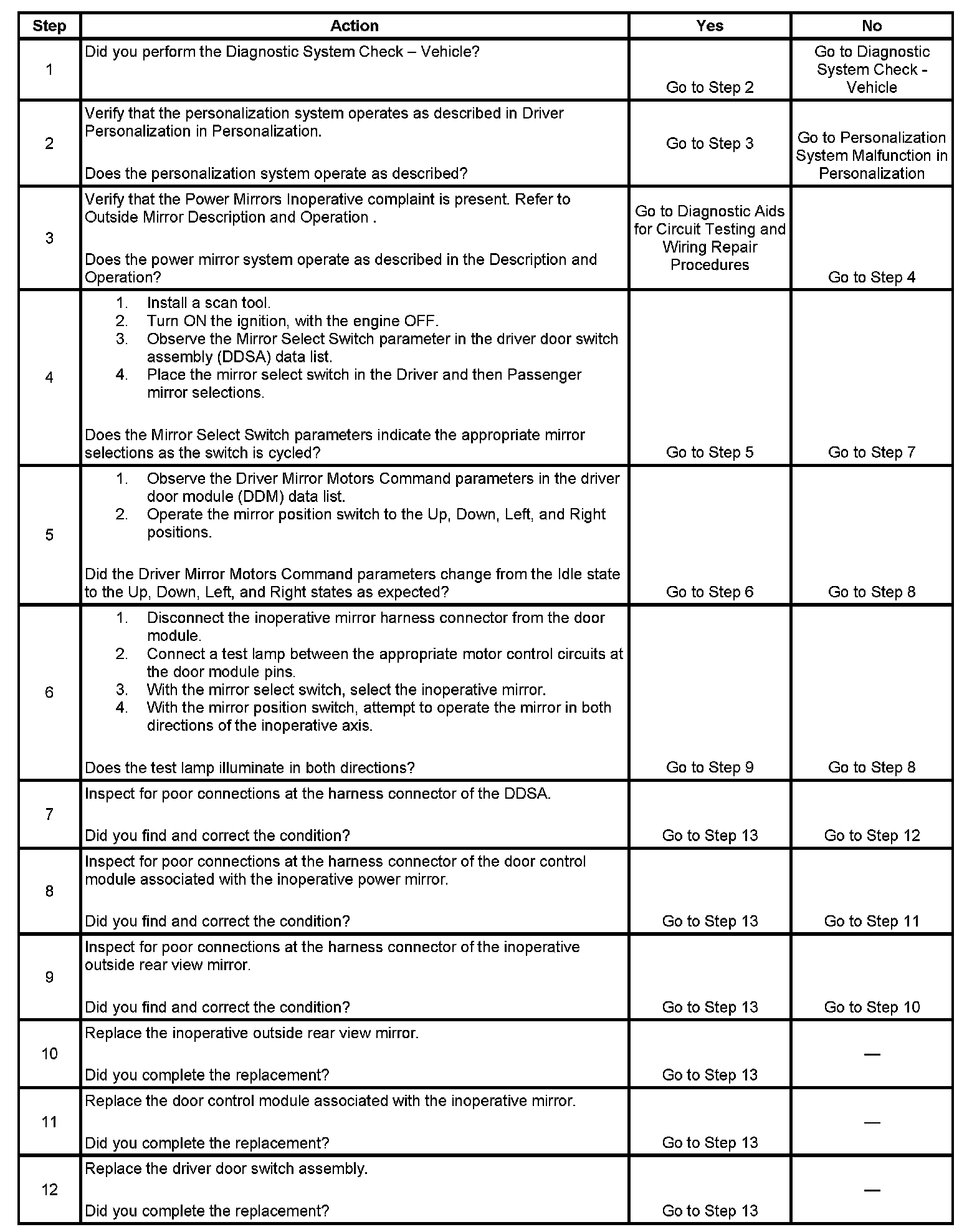 Power Mirrors Inoperative