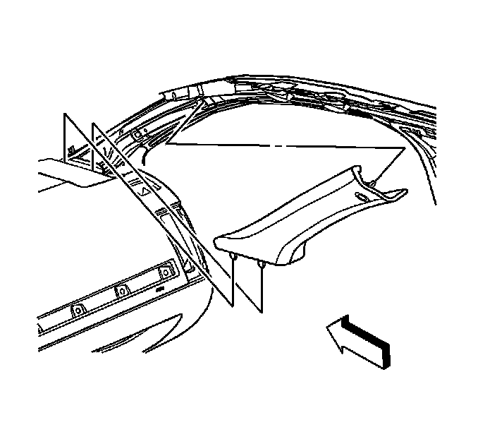 2. Position the molding to the windshield pillar, aligning the tabs to the retention clips on the windshield pillar.