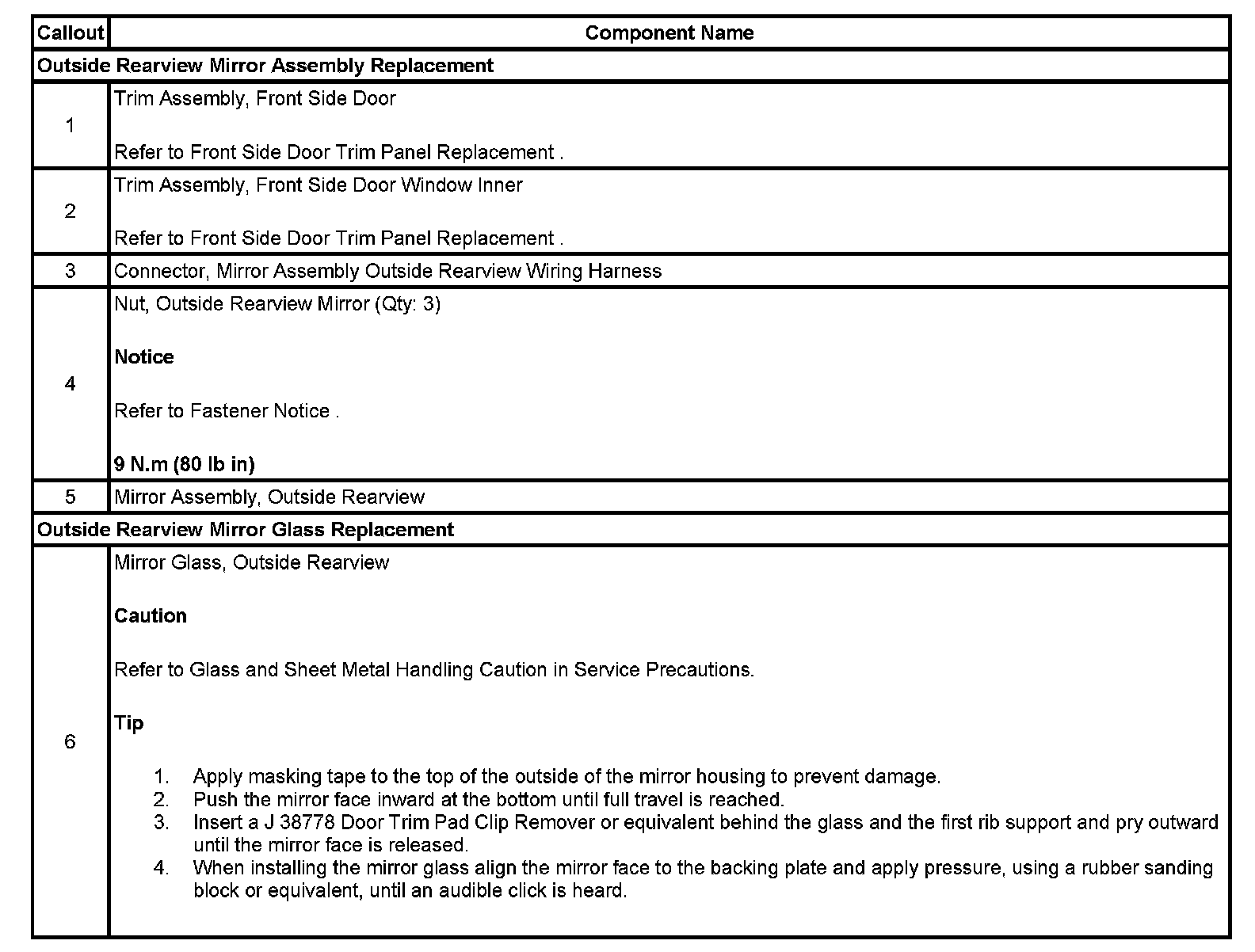 MIRROR, MIRROR FACE REPLACEMENT - FRONT DOOR