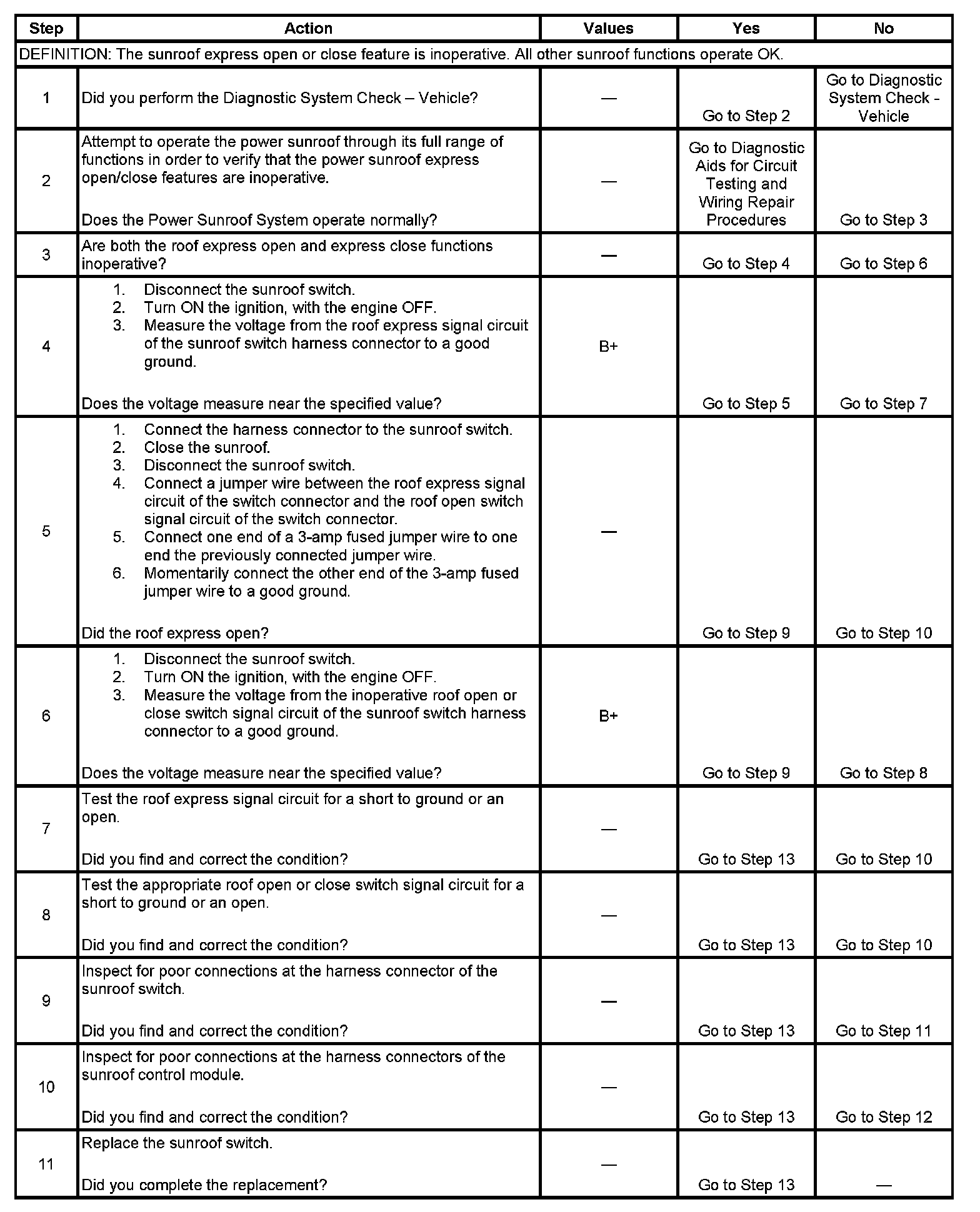 If the sunroof switch express signal circuit is found to be short to voltage, the sunroof switch will most likely be open.