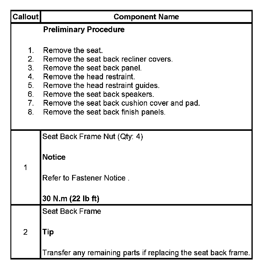Seat Back Frame: Service and Repair