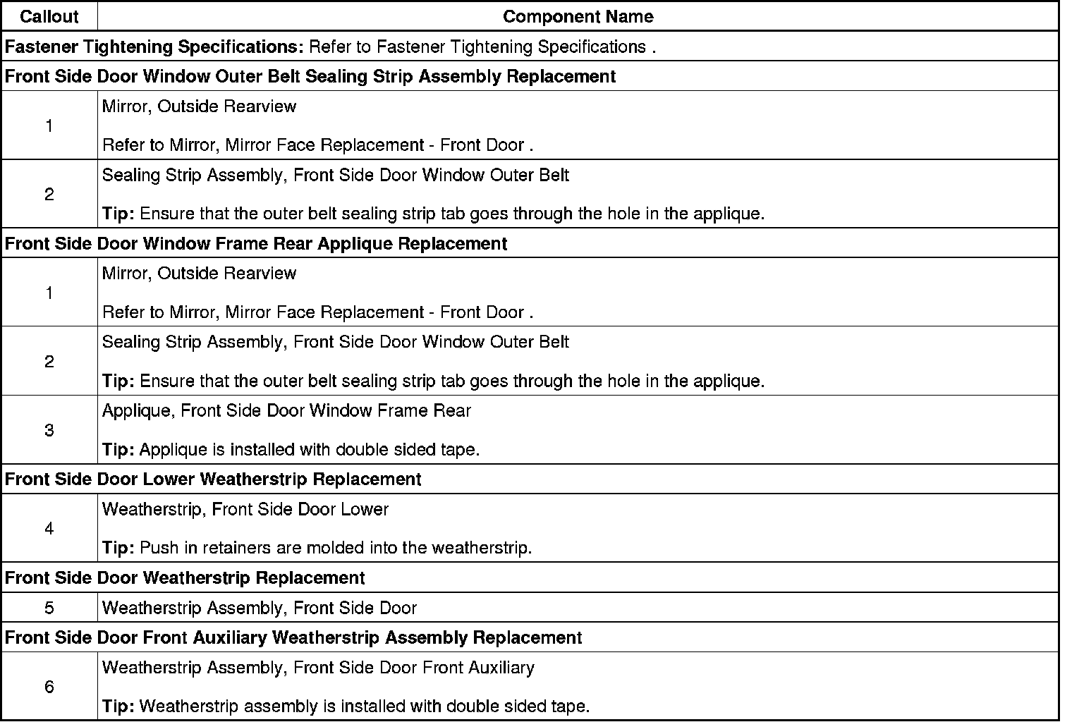 , Sealing Strip Replacement - Front Door