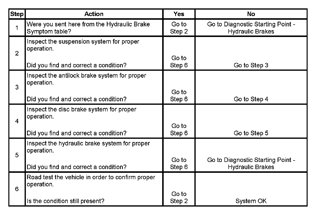 2. Suspension components that are not operating properly may cause a disturbance to the vehicle during application of the brake system.