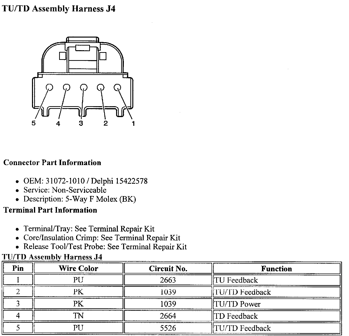 TU/TD Assembly Harness J4