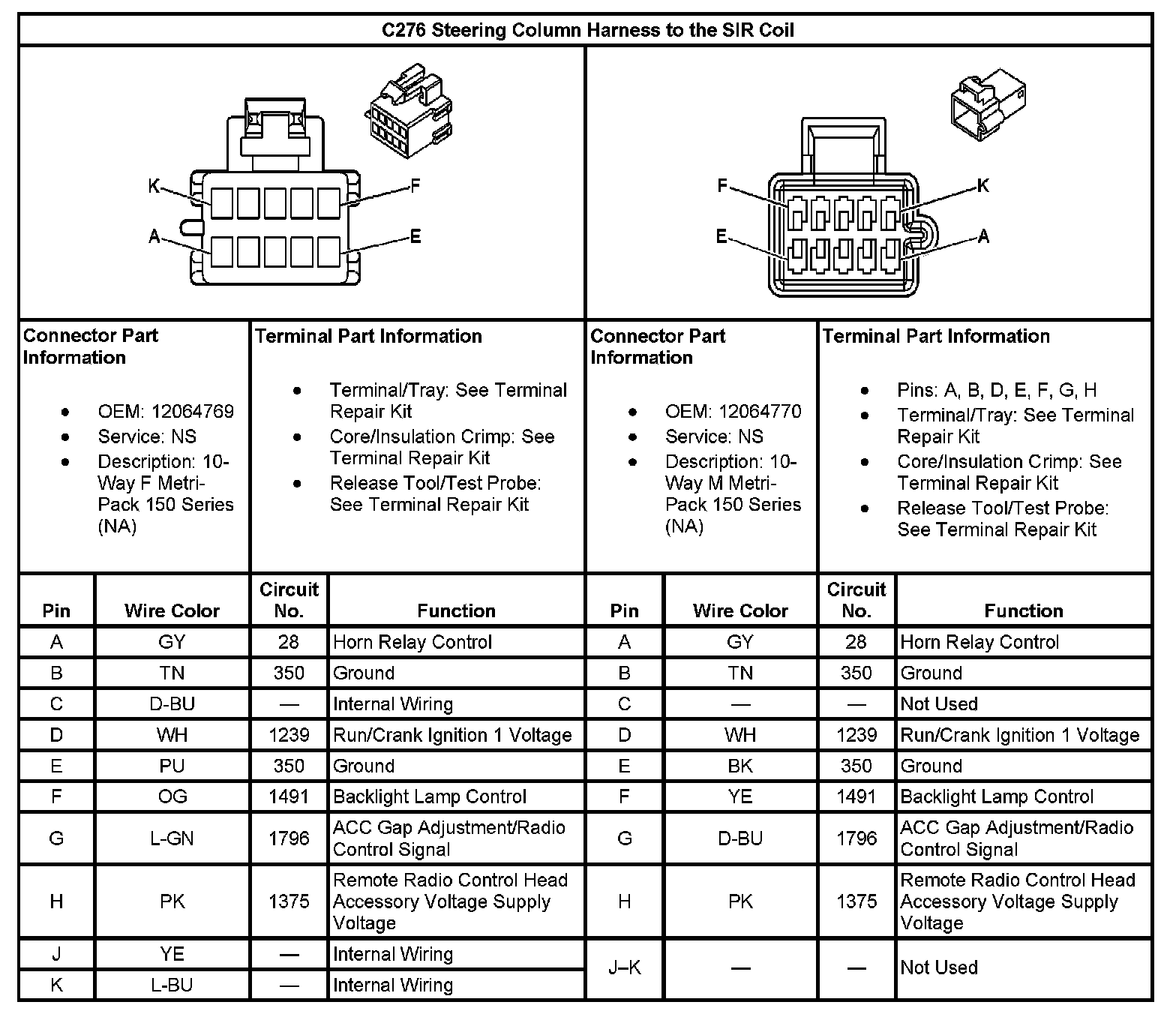 C276 Steering Column Harness To The SIR Coil: