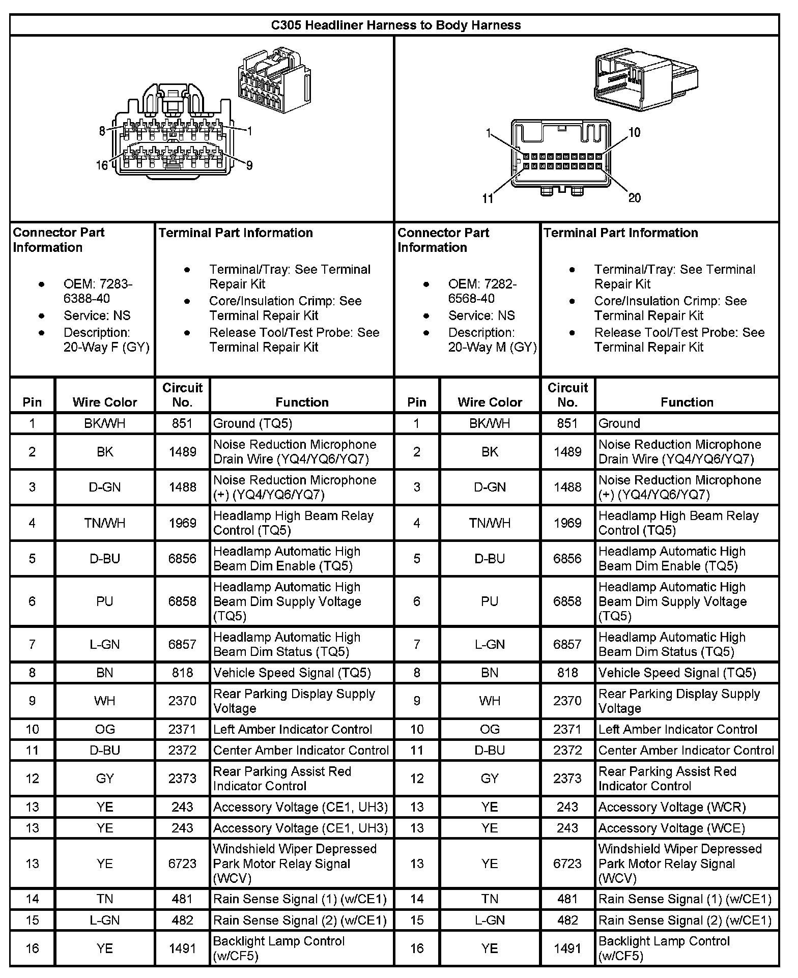 C305 Headliner Harness To Body Harness (Part 1):