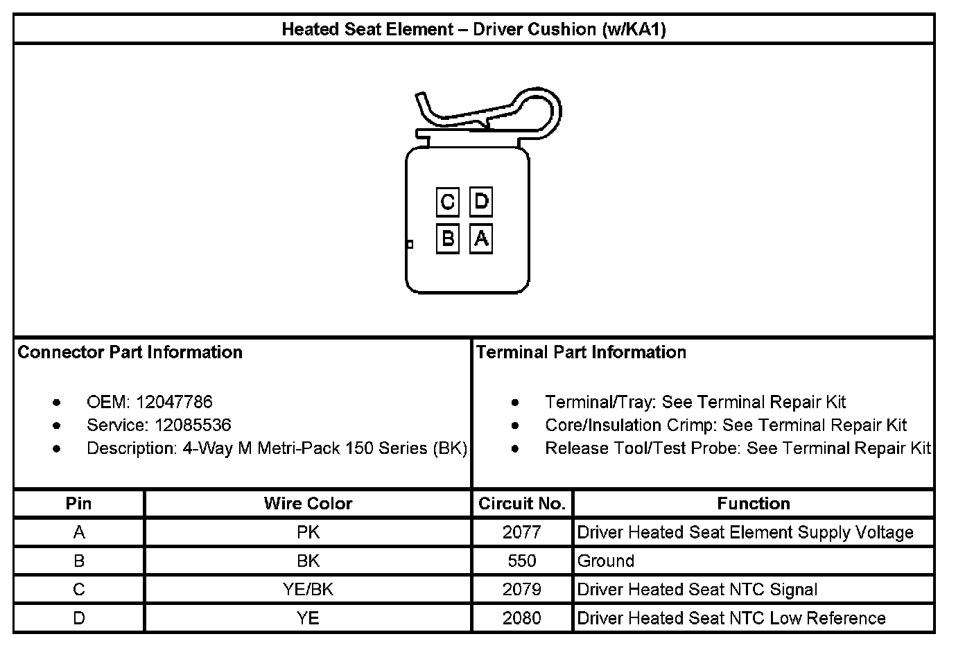 Heated Seat Element - Driver Cushion (With RPO Code KA1):