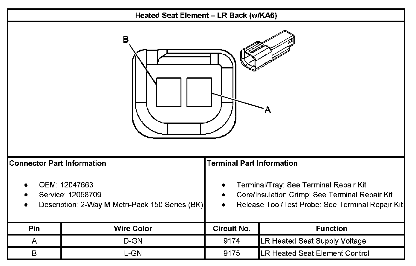 Heated Seat Element - LR Back (With RPO Code KA6):