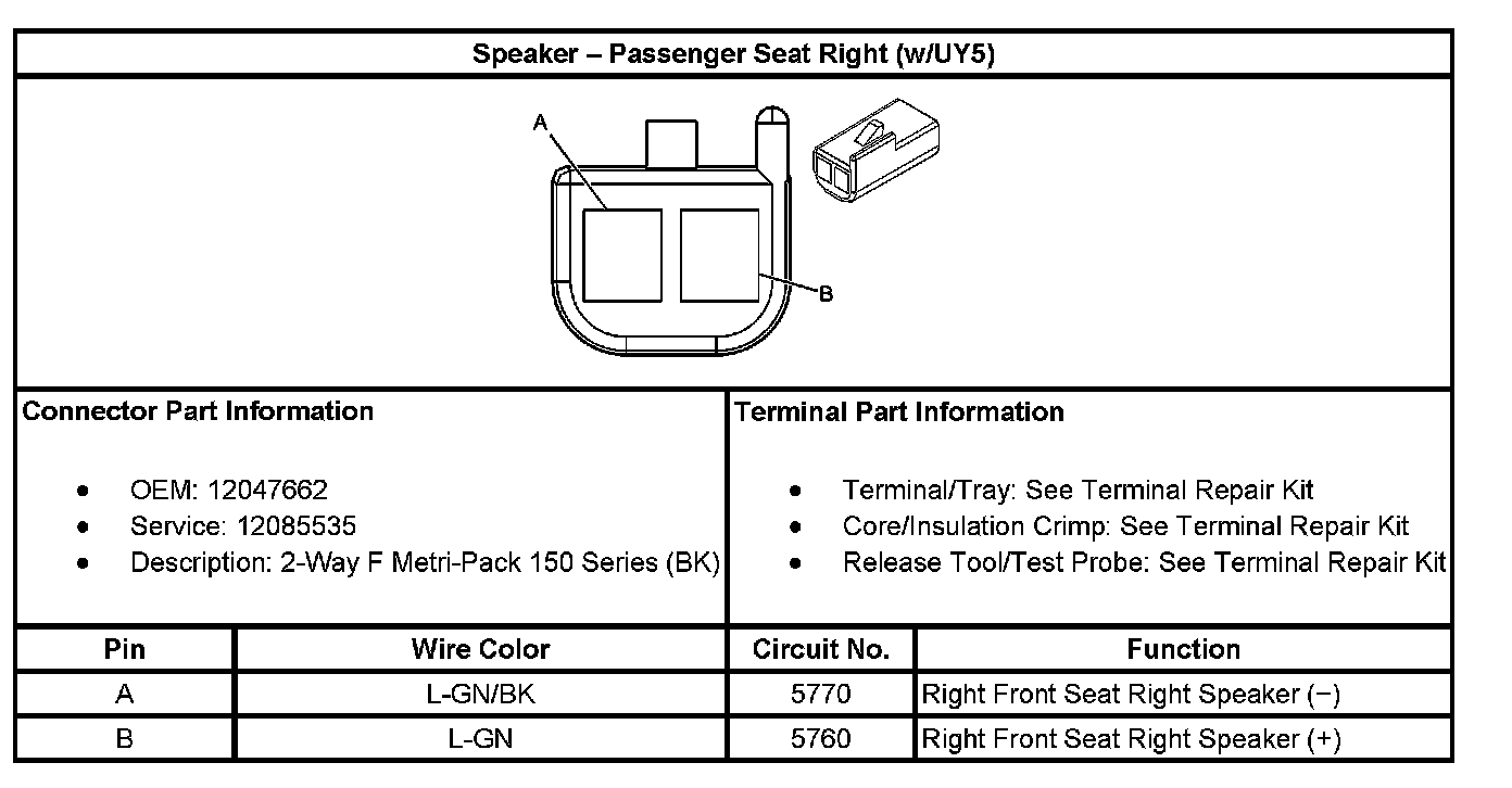 Speaker - Passenger Seat Right (With RPO Code UY5):