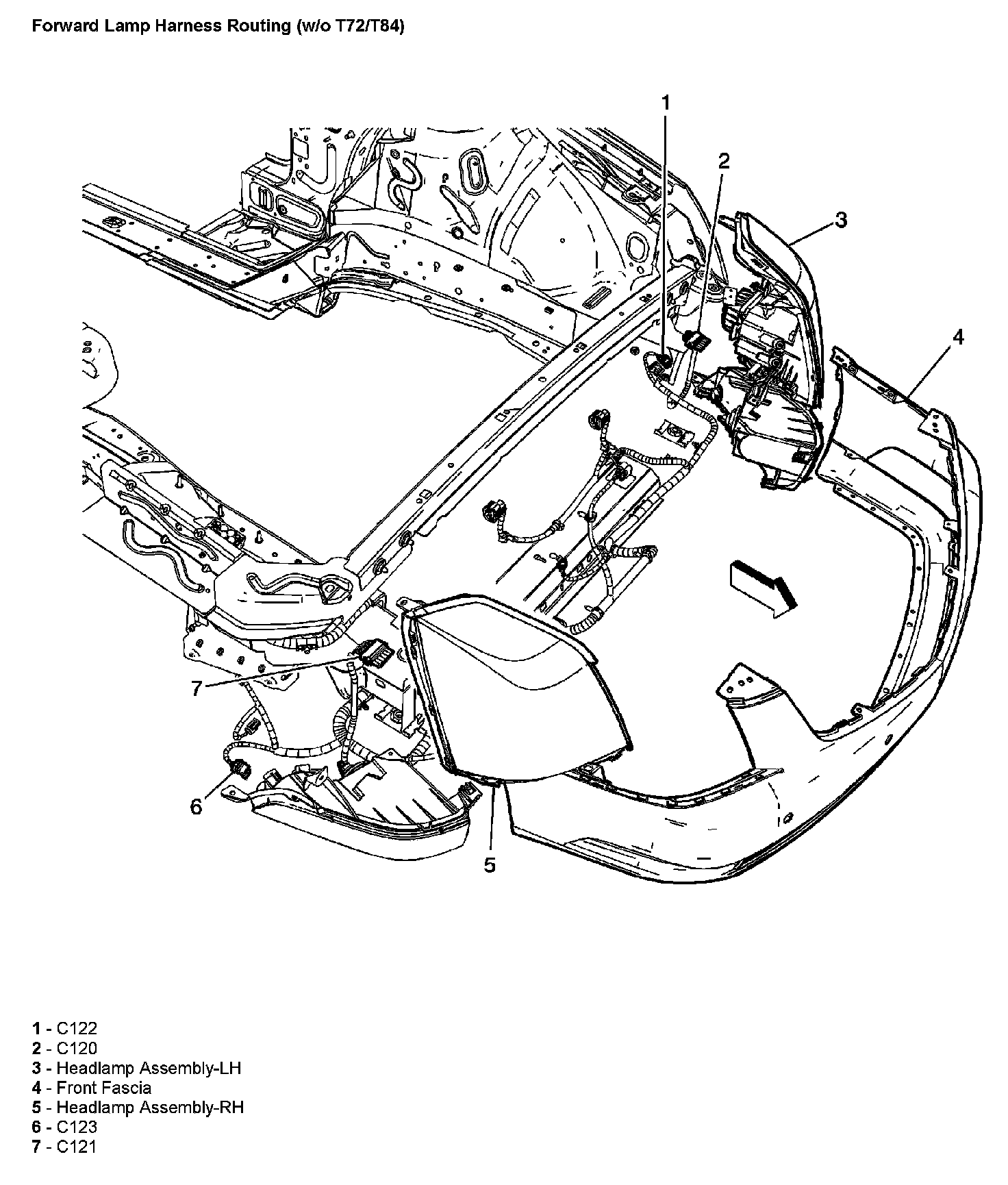 Forward Lamp Harness Routing (Without RPO Code T72/T84):