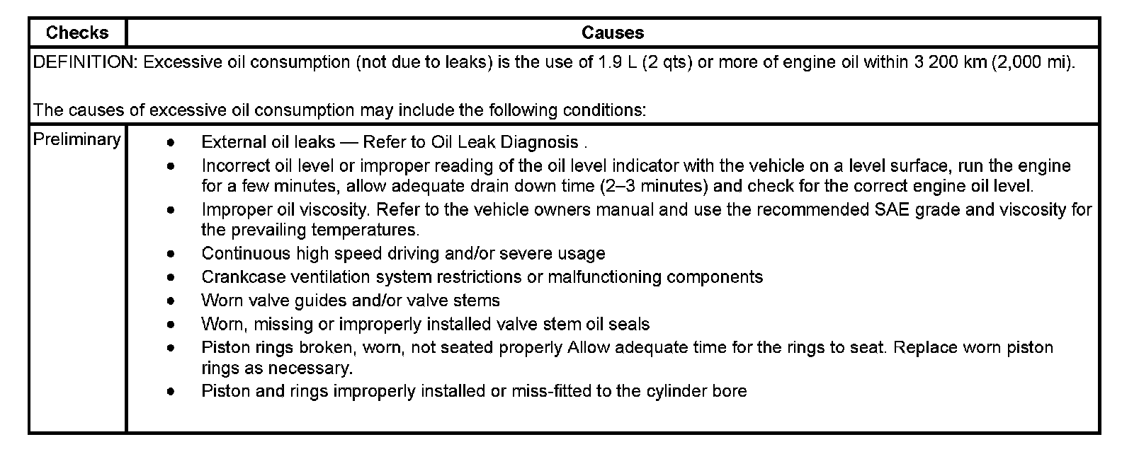 Oil Consumption Diagnosis: