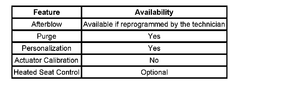 Afterblow is a feature that dries the evaporator core by operating the blower motor after the engine is turned OFF. This reduces the amount of microbial growth that can create undesirable odors. The vehicle does not come equipped with the afterblow feature turned ON. If the afterblow feature is required due to an odor concern, it must be turned ON by reprogramming the HVAC control module. Refer to Service Programming System (SPS) in Programming and Setup.