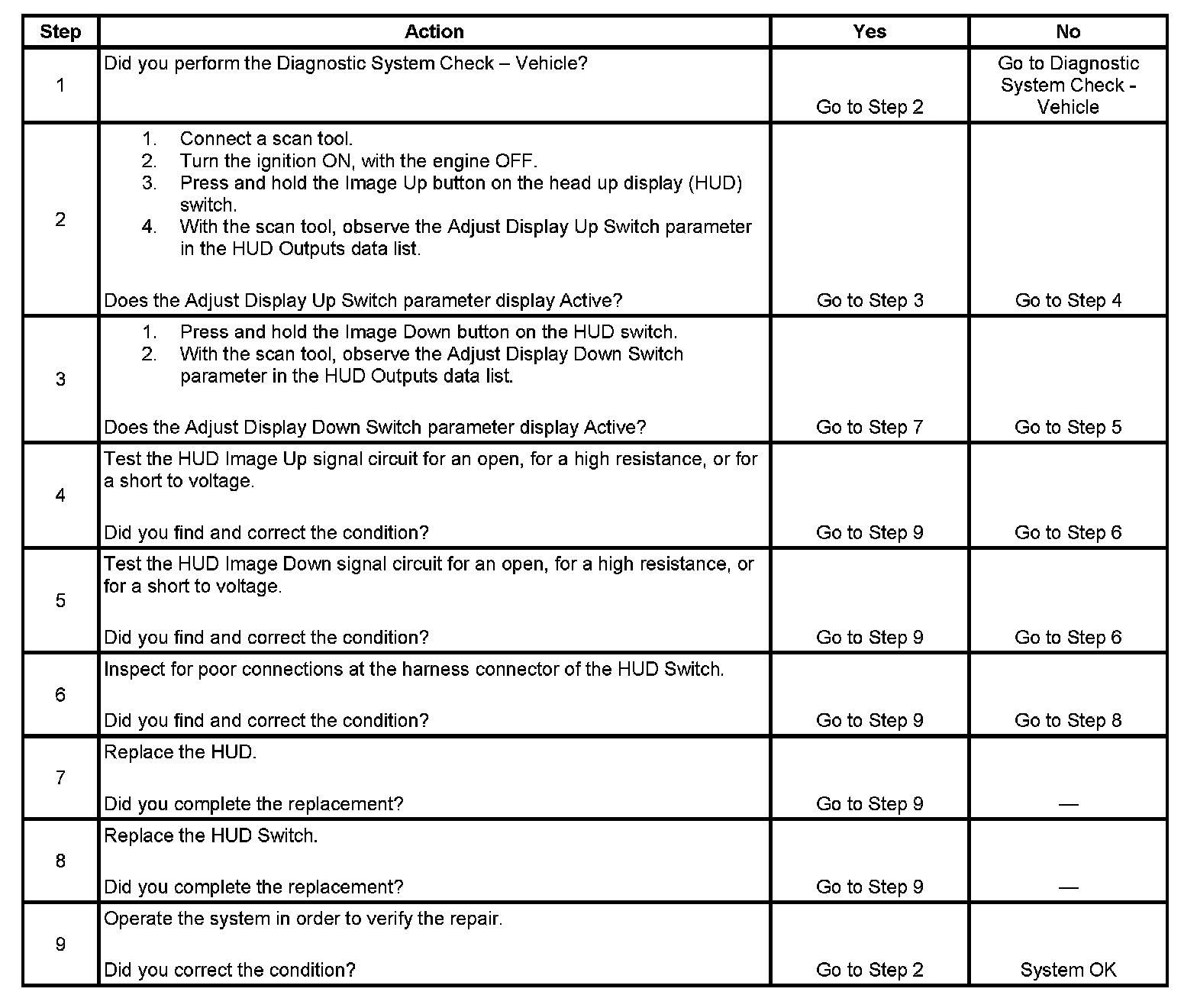 Head Up Display (HUD) Image Adjustment Inoperative