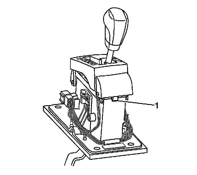2. Release the tabs (1) on the bottom of the shifter position indicator.