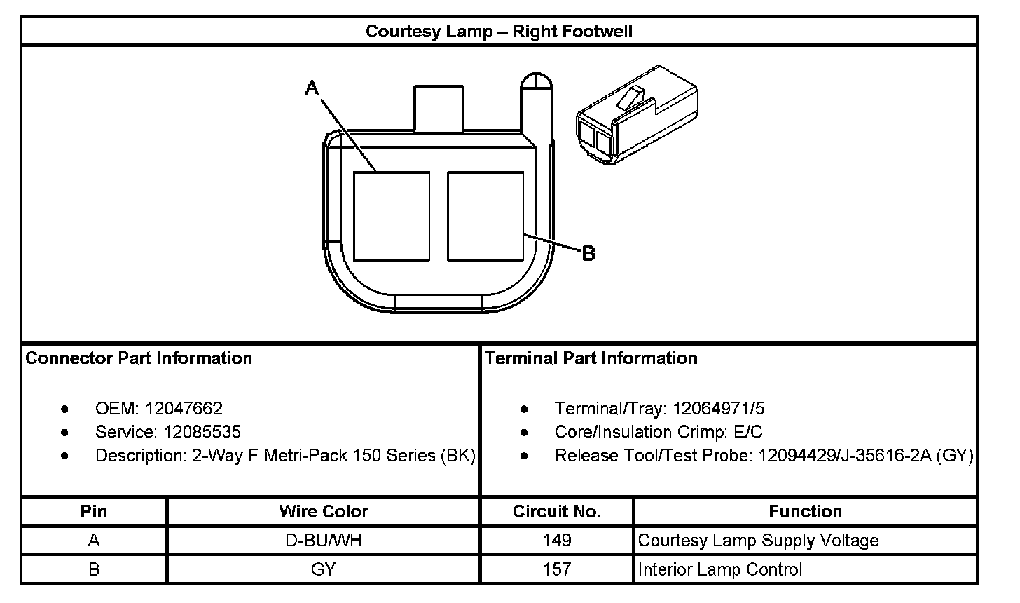 Courtesy Lamp - Right Footwell: