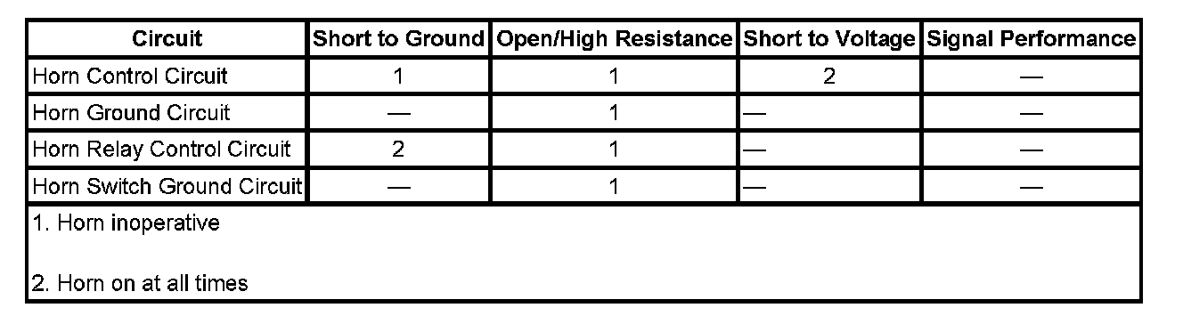 - If the horn continues to sound, repair the short to voltage on the horn control circuit.