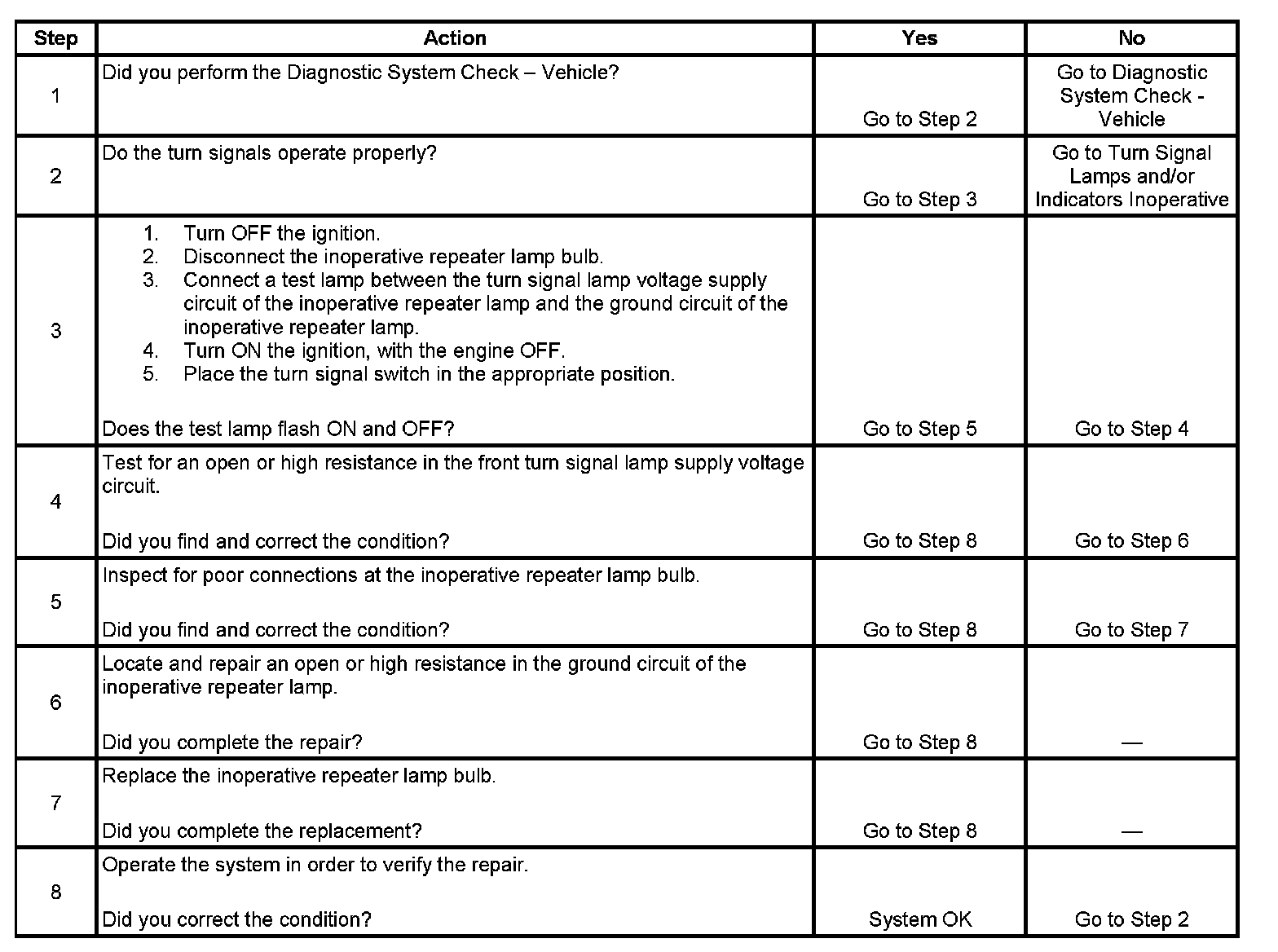 Repeater Lamps Inoperative