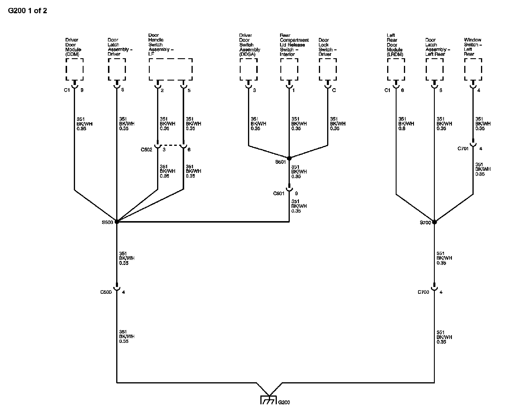Locations: The locations for the Connectors, Grounds, Splices, and Grommets shown within these diagrams can be found via their numbers at Vehicle Locations. Locations