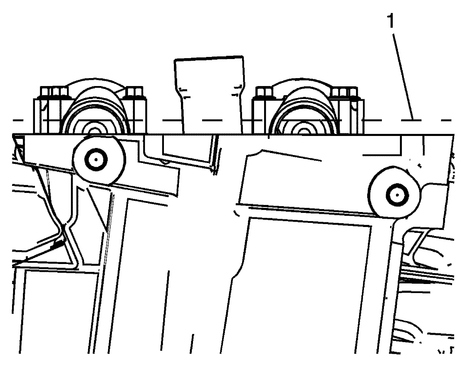 5. Rotate the crankshaft using the crankshaft balancer bolt until the camshafts are in a neutral (low tension) position. The camshaft flats will be parallel with the camshaft cover rail (1).