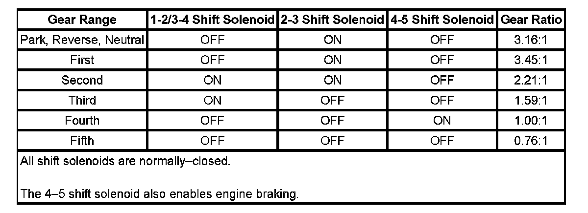 Shift Solenoid Valve State and Gear Ratio:
