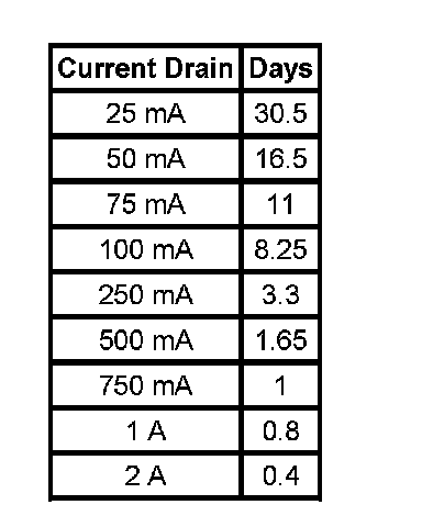 2. Compare this to the multimeter milliampere reading taken in the previous step. The parasitic current drain should not exceed this number. Example: If a battery has a reserve capacity of 100 minutes, (60 A/H) the current drain should not exceed 25 mA.