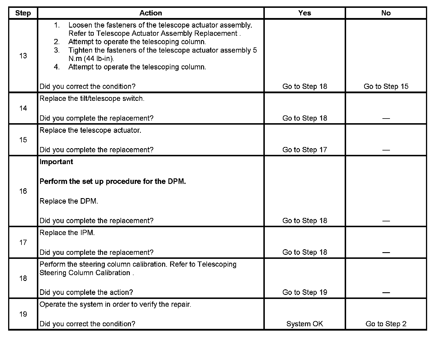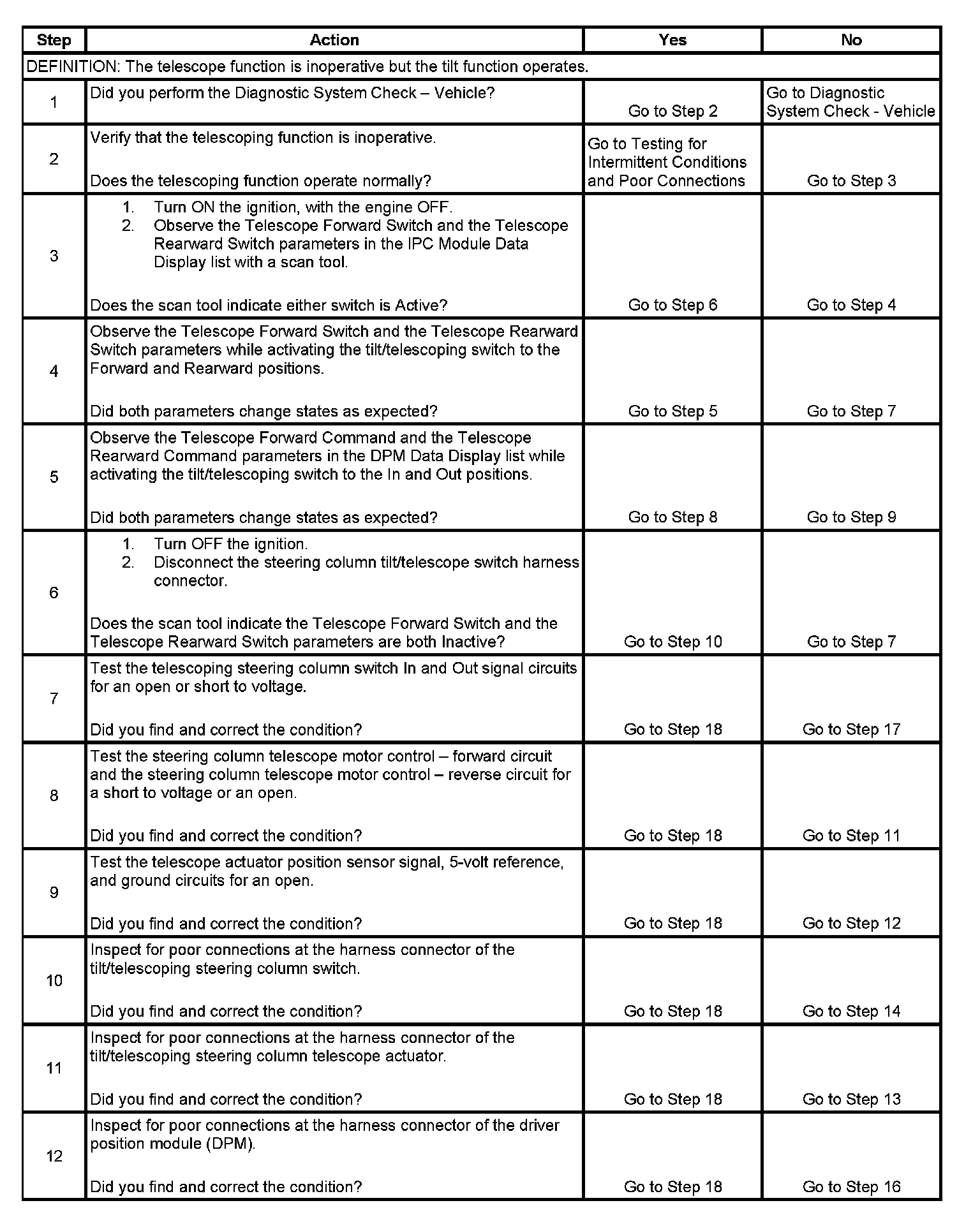 Steering Column Does Not Telescope In/Out