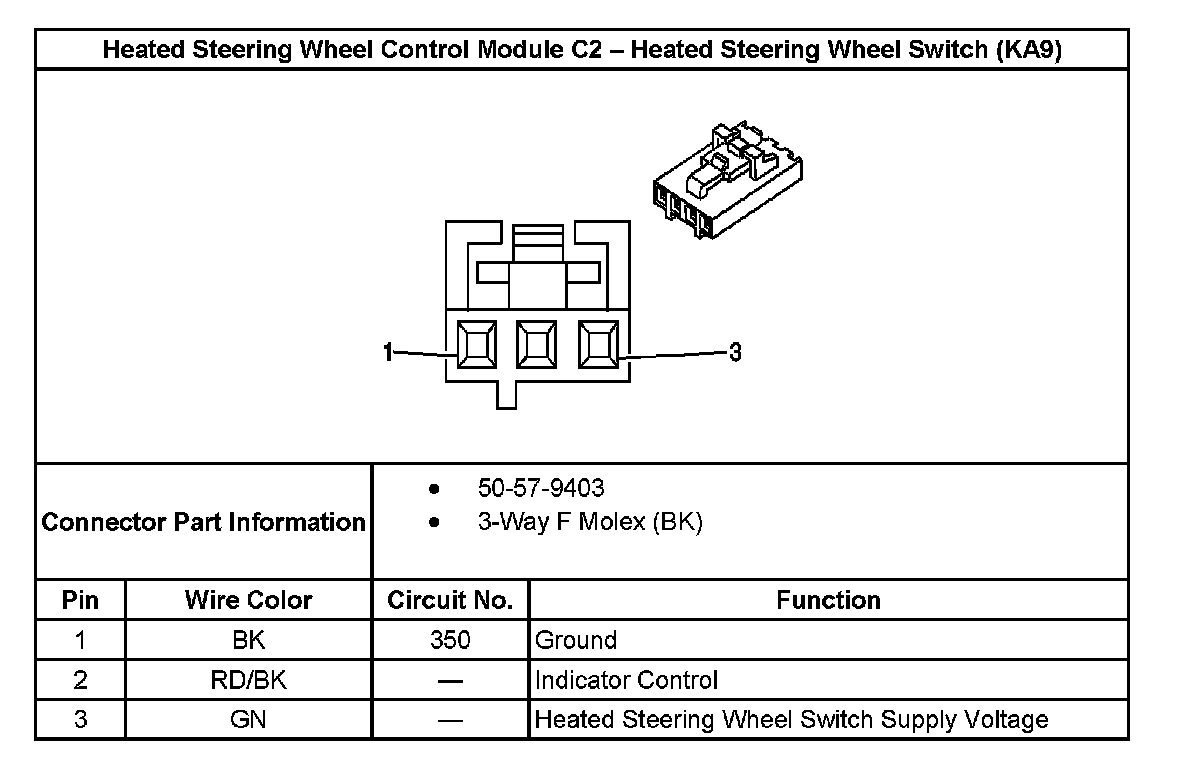 Heated Steering Wheel Control Module C2 - Heated Steering Wheel (KA9):