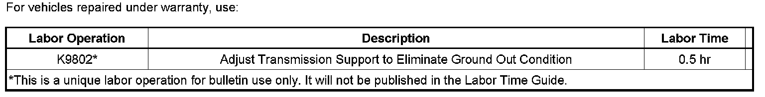 Adjust the transmission support to eliminate the ground out condition using the procedure below.