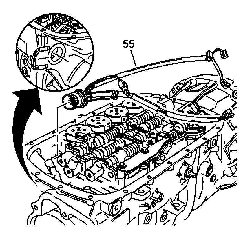 1. Using a small screwdriver pry the wiring harness (55) off of the following components: