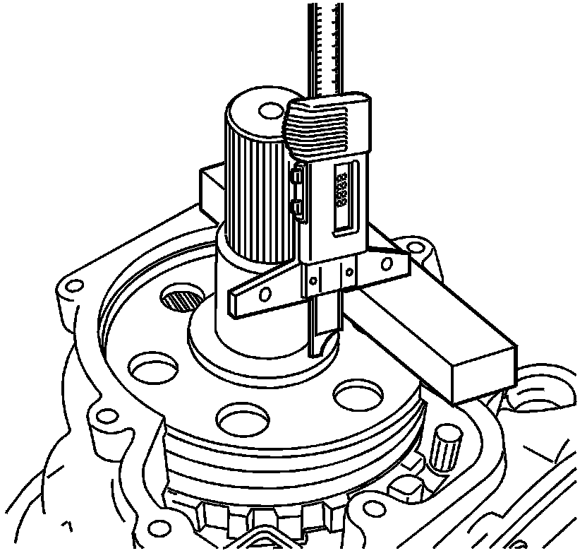 4. Measure from the bottom to the face of the bearing. Record this as dimension B. Refer to the End Play Specifications (5L40-E) End Play Specifications (5L50-E) to determine the correct washer size.