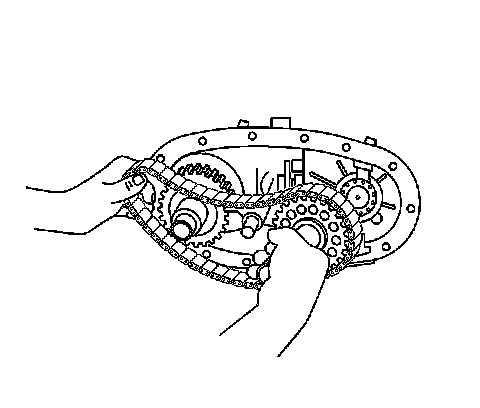 0. Position the drive chain on the driven sprocket on the front output shaft.