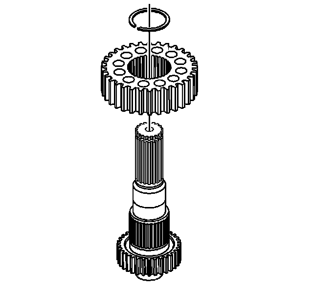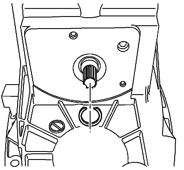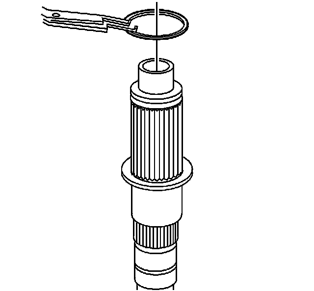 18. Install a new retaining ring, for the clutch housing, on the rear output shaft. Ensure the retaining ring is properly installed in the groove.