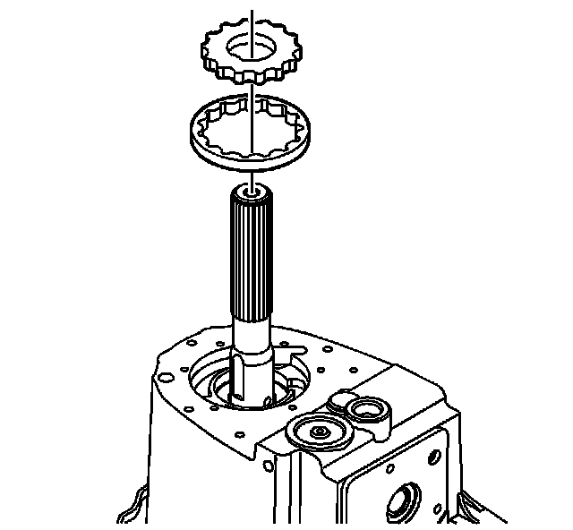 17. Install the rear output shaft thrust washer. Align the tabs with the shaft splines.