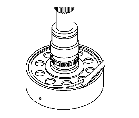 38. Remove the planetary carrier assembly. Tap on the end of the mainshaft with a soft-face hammer while lifting off the planetary carrier. A spring style retaining ring holds the planetary carrier to the mainshaft.