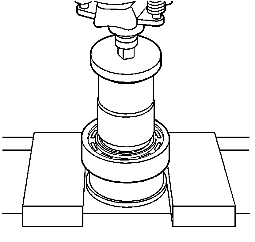 28. Using the flat side of the J 22912-01 and a press, remove the rear output shaft bearing.