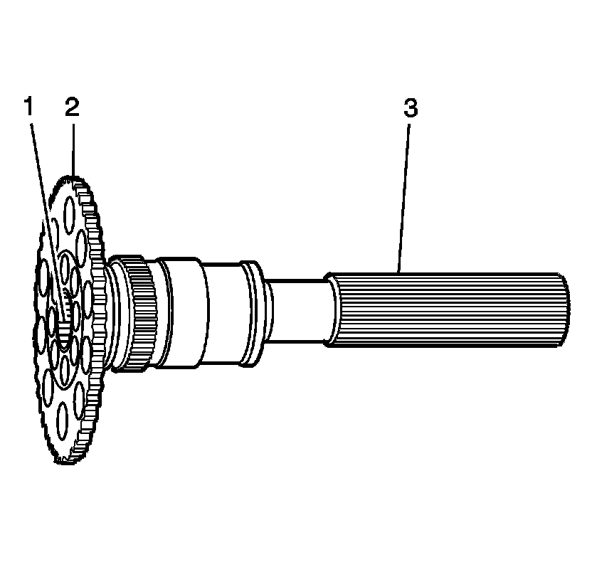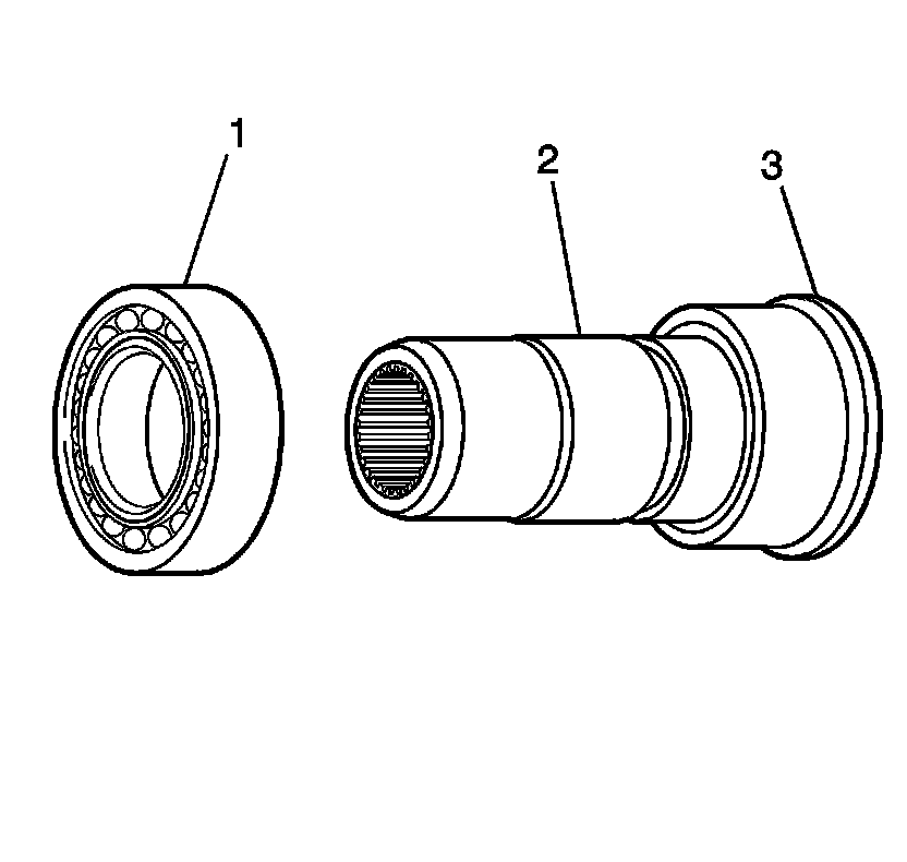 3. Inspect the rear output shaft splines (3) for damage or excessive wear. Witness marks at the location of the gears are normal.