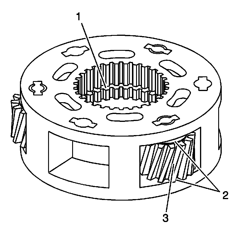 5. Inspect for a washer (2) being on each side of the planetary gears.