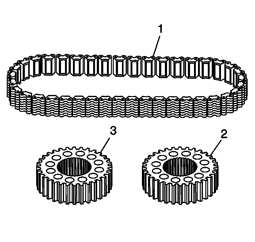 4. Inspect the driven sprocket (2) and the drive sprocket (3) for the following conditions: