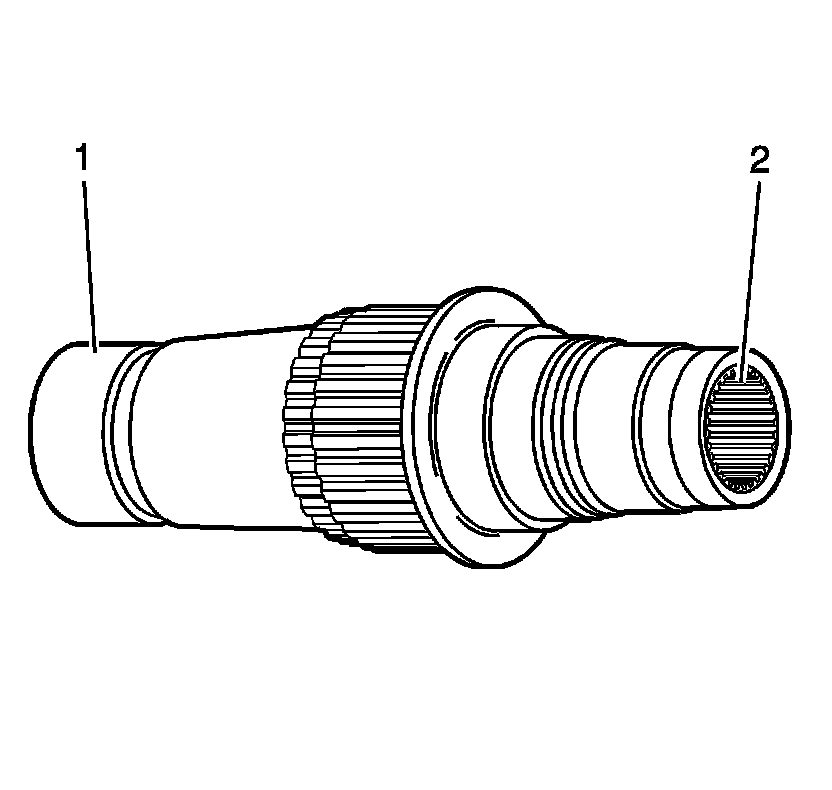 4. Inspect the mainshaft splines (2) for excessive wear. Witness marks on the splines are normal.