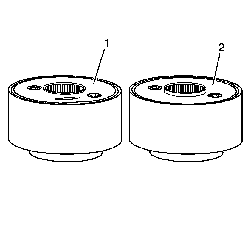 1. Inspect the viscous coupling for a bulged rear cover (1). The rear cover should be flat (2).